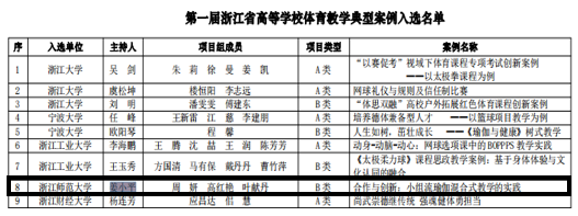 近期,公司姜小平老师主持的公共体育课程《合作与创新:小组流瑜伽混合式教学的实践》入选第一届浙江省高等学校体育教学典型案例。