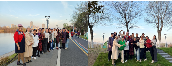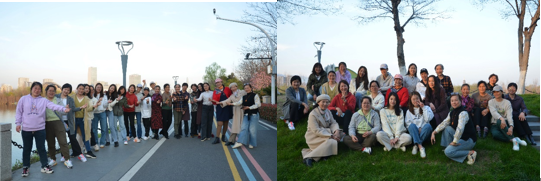下午五点,有课的老师们也陆续在课后赶来参与活动。大家在江边拍照、闲聊,玩得不亦乐乎!其中,有稍年长的“高知组”合影,也有年青一代的“活力组”合影。