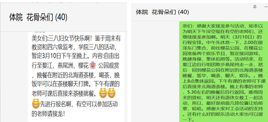 退休女教工:“这次的三八活动,学院考虑到退休女教工也一起加入户外活动,感觉心里很温暖,另外,看到学院新生代力量的蓬勃发展,也由衷为学院的青春活力感到高兴,学院未来的发展一定越来越好。”