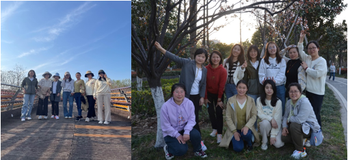 时值三月,春意盎然,阳光和煦,老师们的脸上也洋溢着灿烂的笑容。一路上,老师们尤其是退休老教工们,看到久违的同事们,都情绪高涨,有说有笑地前往活动目的地——婺江边的樱花公园及堤坝。